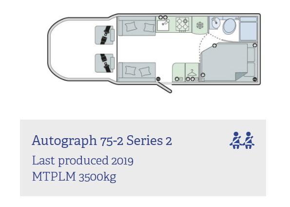 Betty is a 2019, Series 2, Bailey Autograph 75-2. Part of a six model range at the time. This model sits on a Peugeot Boxer Euro 6 cab supplied with a 2.0 Blue HDi 160 bhp engine & six-speed manual gear box, AL-KO AMC ultra-low profile chassis, Alu-Tech bodyshell with GRP outer skin. With an MTPLM of 3500kg this model can driven on any standard driving licence. We chose this particular model for its spacious, light, modern and airy interior as well as the layout of the key features such as the lounge, fixed bed and bathroom.