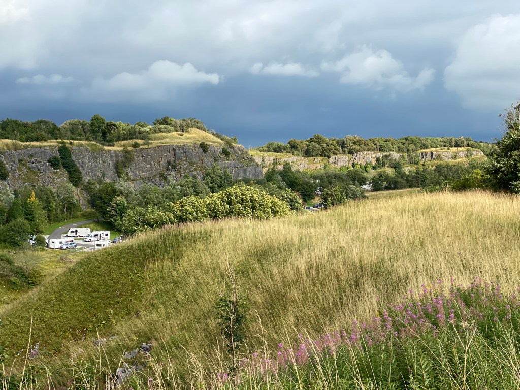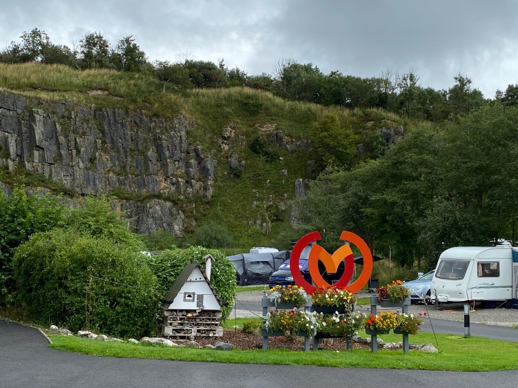 Our afternoon was spent with old friends who we have not seen in person for almost two years. We welcomed Gemma and Jackie into our home from home with excitement to catch up again! We cannot describe how good it was to meet up in the Peak District and have a catch up, coffee and cake – as a reward after a lovely walk up to Soloman’s Temple and down into Buxton – then back up the hill again to the Grin Low Caravan and Motorhome Club site in the quarry!