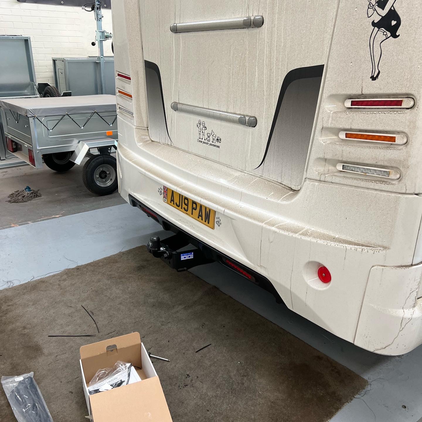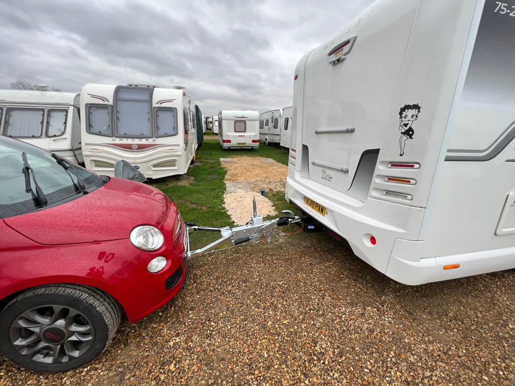 So our first job once we got the car was to arrange for a solid tow bar to be fitted. Hours of research led us to TrailerTrek in Coventry. https://www.trailertrek.co.uk is the link. A great installation took just 2.5 hours – to fit the Tow Trust TALK01 Al-Ko chassis specific tow bar unit to the back our Bailey Autograph 75-2. We could not recommend them highly enough.