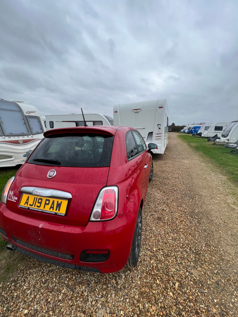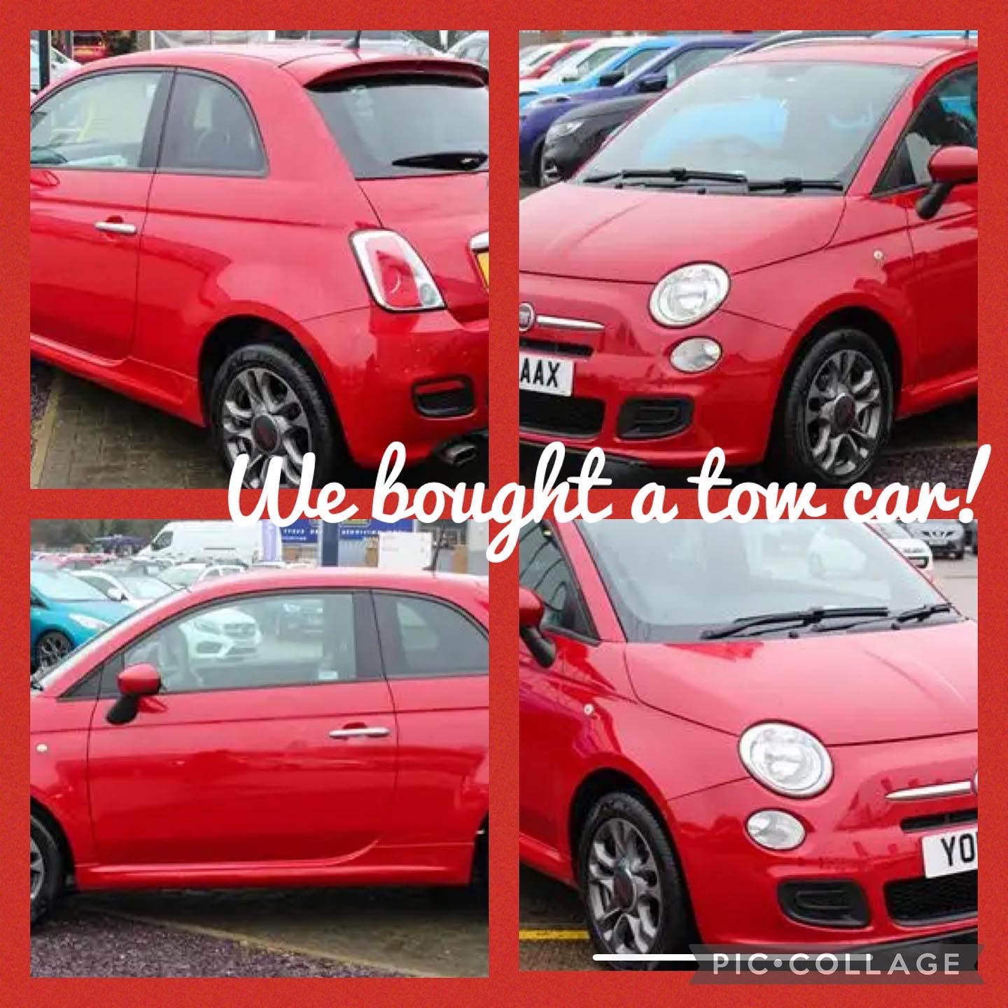 We bought a tow car! In order to really expand our adventures in Betty we have purchased a small tow car for the back of the motorhome. This was a big decision and adds to the fleet of vehicles we have with our own cars and motorhome. After much research we opted for the Fiat 500 S and spending a few weeks researching found a lovely little low mileage model not too far from home! Please say hello to our little Cherry! She has a nippy little 1.2 engine and will be great for our getaways and maybe the supermarket shopping too!