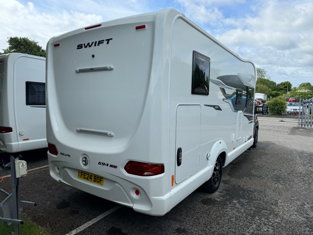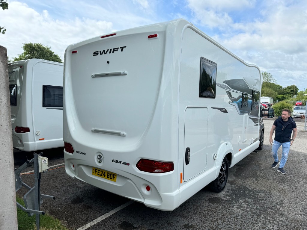A visit to Don Amott in March 2024, led to us looking at a new Swift Escape 694. We had recently seen these and other Swift models and caravans being made during a factory tour we took in early March. This gave us some assurance of the build process, quality assurance processes they have and get to see the vehicles for ourselves. We had in mind the Kon Tiki range but soon concluded that they were just not worth the additional expense compared to