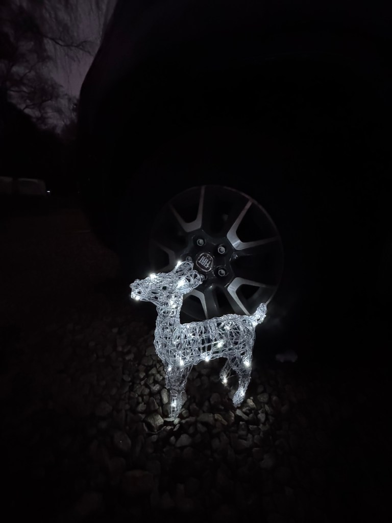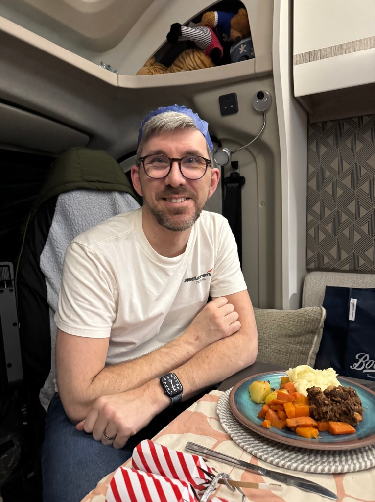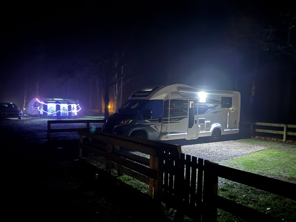 We last stayed here in December 2023 for the same Twixmas few days and so we thought we would do the same again. On arrival this time the team allocated a super pitch for us – a cracking site team pitch that was vacant for this time of the year. We really enjoyed this stay and loved seeing all the Christmas lights that were decorating the caravans and motorhomes and whilst we took a little reindeer with us we might have to up our game for 2025 wherever we go for the Twixmas trip! We cooked a Christmas dinner in the van and decorated with some bits and pieces.