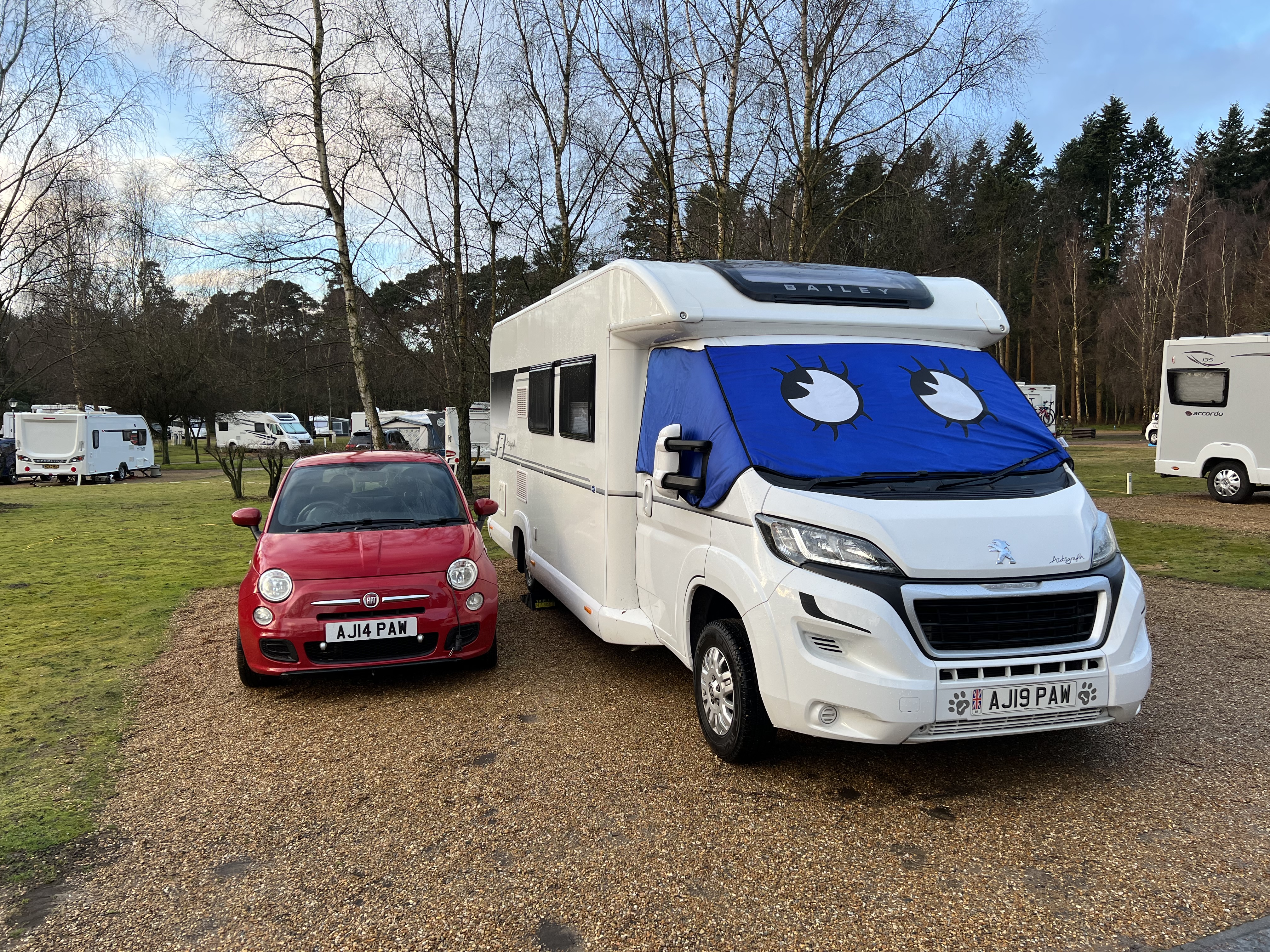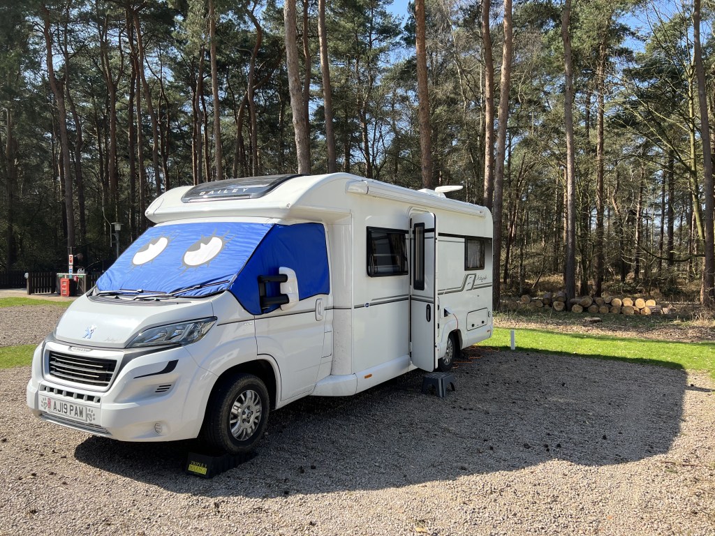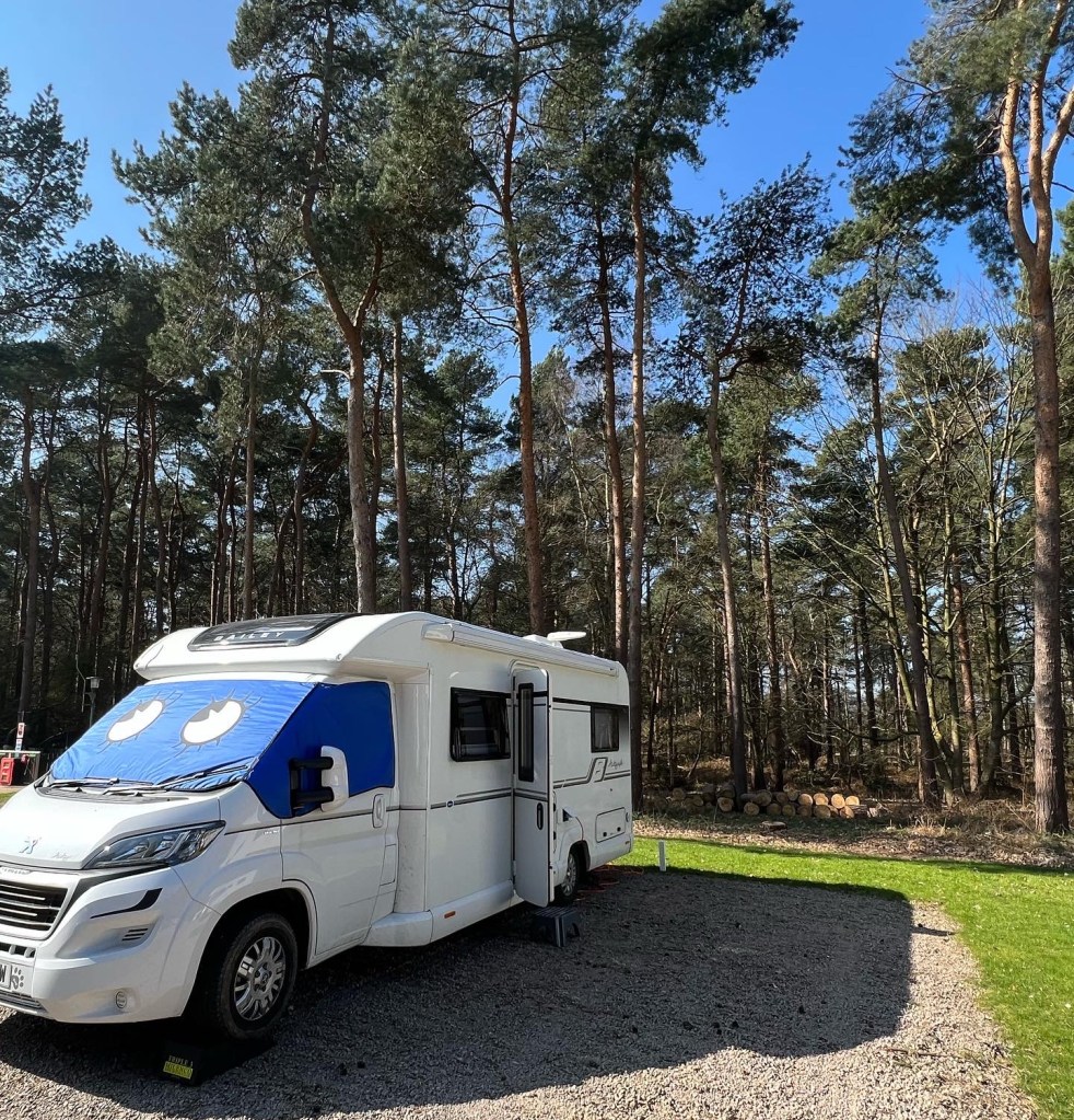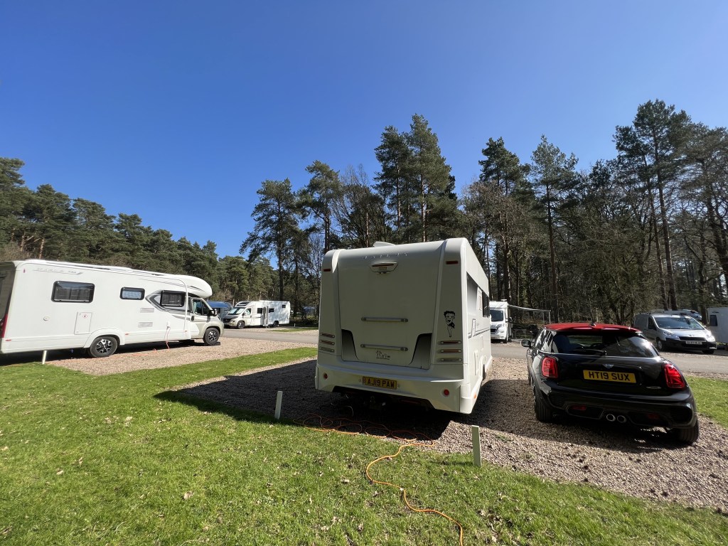Thetford Forest, Suffolk – This little spring trip was our first visit to the Caravan and Motorhome Club site – and this really is a little gem! We arrived fairly late into the afternoon and so had a small choice of hardstanding pitches but were lucky to have the selection of Pitch 26 just a couple of pitches away from the motorhome service point and in quite a quiet end of the campsite. What is really unique about this site is the location – on the grounds of the former Desert Rats (tanks) training ground. Good walks around the local area, woodlands and roadways (on the former concrete tank tracks) reveal much of the former history, including a tank and memorial at the entrance to the complex. Jamie had just collected his new car and so we took the opportunity to bring this along to try out over the weekend with trips into Thetford and Swaffham. We also visited Brandon Country Park just a short drive away. Lovely to meet the warden team, who recently moved over to Thetford, who remembered us from their time at Sandringham during our last visit there! A lightly further trip than our mainstay of Sandringham but worth it and we would love to visit again!