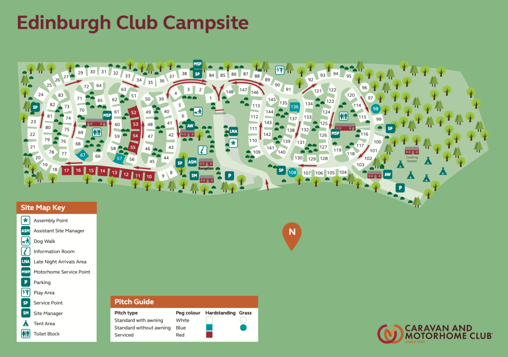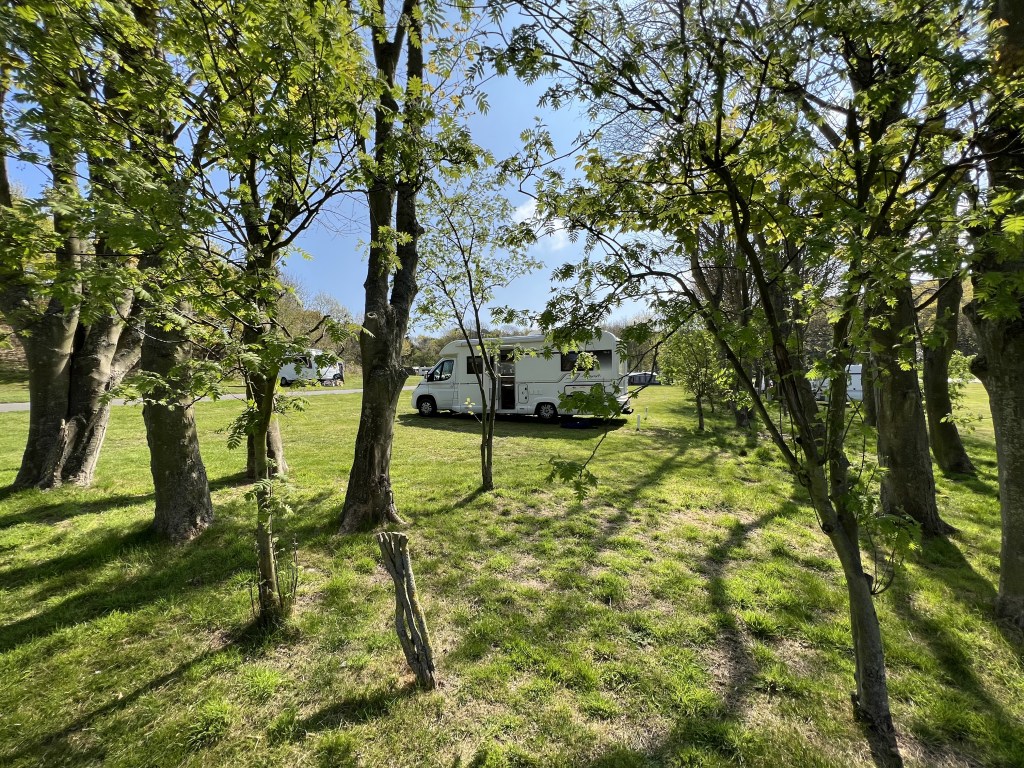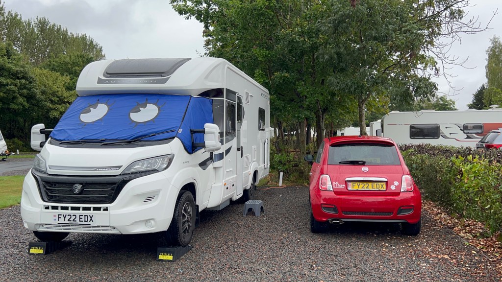 Durham Grange Club Site – This is our second visit to Durham Grange. We were here in 2021 as a stopover as we moved west to east across the UK for our the summer tour. This year we have used the site as a stopover to break up our journey to Edinburgh which was our first Scotland stop for the summer tour in 2022. The site is well placed practically next to the A1 – now this is an interesting and often controversial point on the social media groups as some people complain about the road noise, others welcome its location (both for the A1 and the short drive and steady walk into Durham itself). We do not find the road noise too intrusive at all – you know its there when you tune into it but its not a concern for a lay-over or for a couple of nights. The CAMC wardens here are very helpful and welcoming. We opted for a serviced pitch for this one – whilst some may say a luxury, this really does offer the one night flexibility as you don’t need to visit the motorhome service point on arrival or departure so helps maximise the stay you have. Pitch 31 for us on this stay. The site was not full with a spattering of available pitches. There is a nice woodland dog walk for the fur babies too!