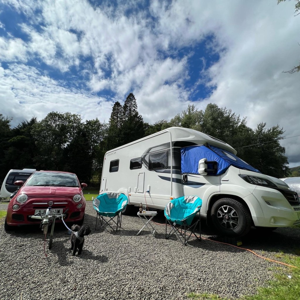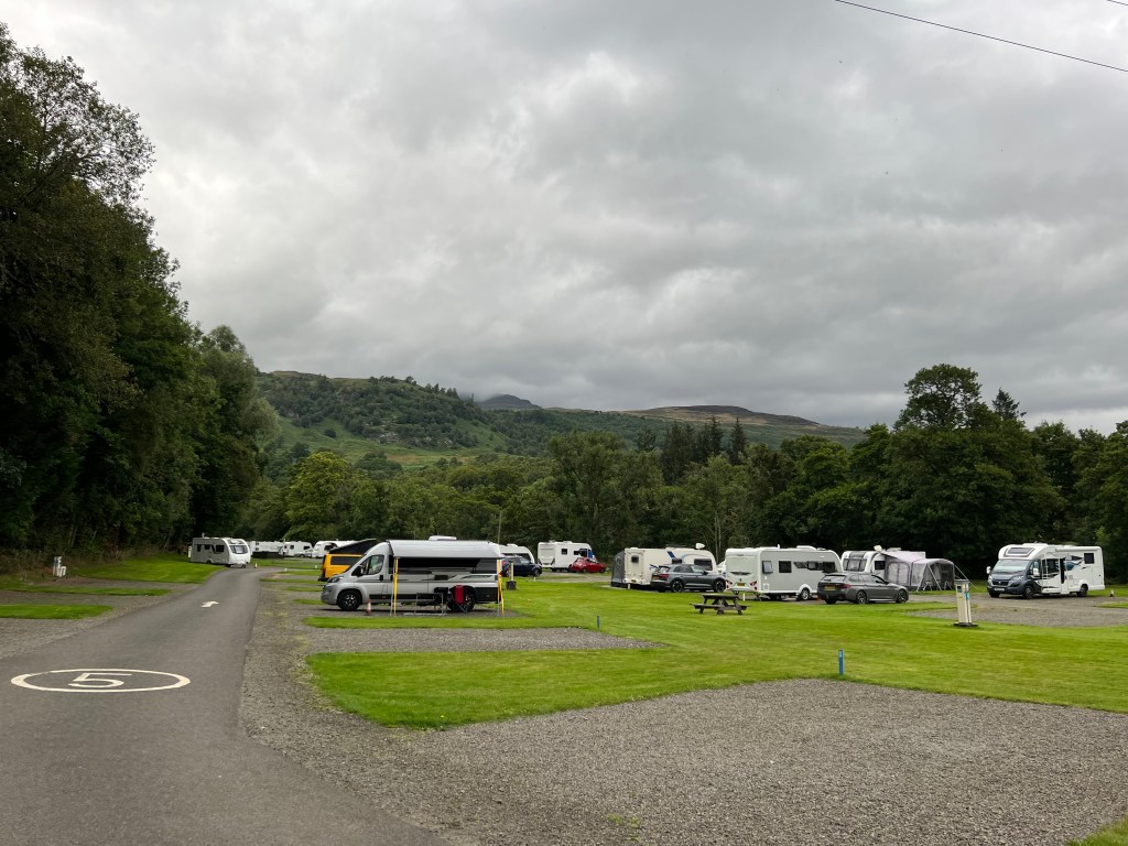 Maragowan Club Site – We booked a nights stay here as a half way point moving across from the east to the west. As we could not do the full coastal route this trip – we wanted to find somewhere in-between. A good recommendation and a stones throw from the lovely Loch Tay – a nice village to walk around with a spattering of outdoors and local shops (including a lovely new build Co-op). The site is a short 10 minute walk into the village. We enjoyed Pitch 38 which had a nice view over the fast flowing river alongside the edge of the site. We have to say this was one of the most welcoming arrivals we have had from the site team – 10/10. The site is long and narrow and there is a good amount of space between the pitches. The site was clean and tidy, good facilities and easily accessible motorhome service point. We liked the atmosphere here, but note the busy road into the village – there are a lot of tree-felling lorries – both coming at you fast and also destroying the road surface so take your time going into this one.