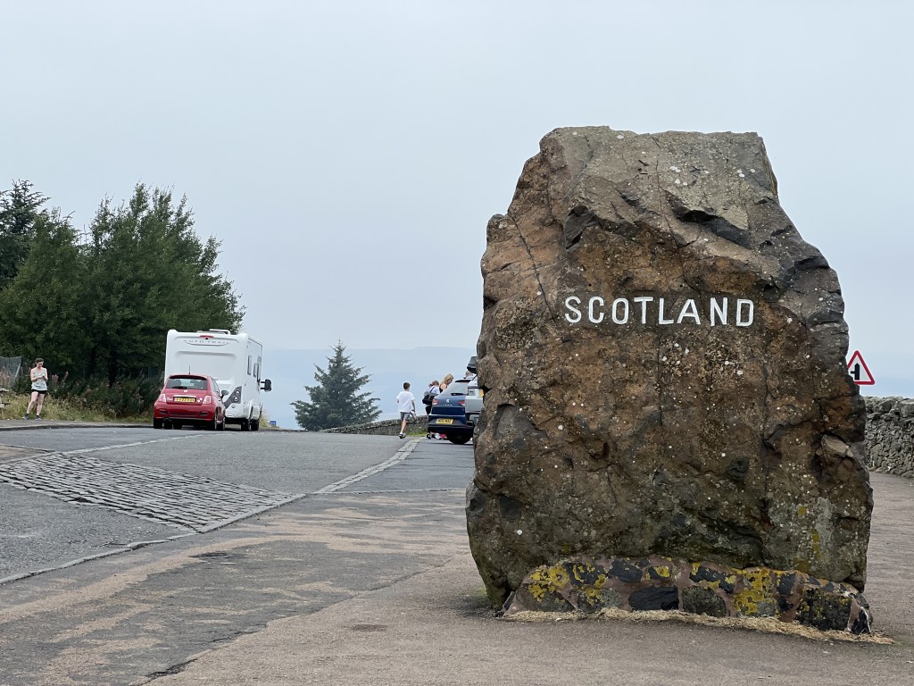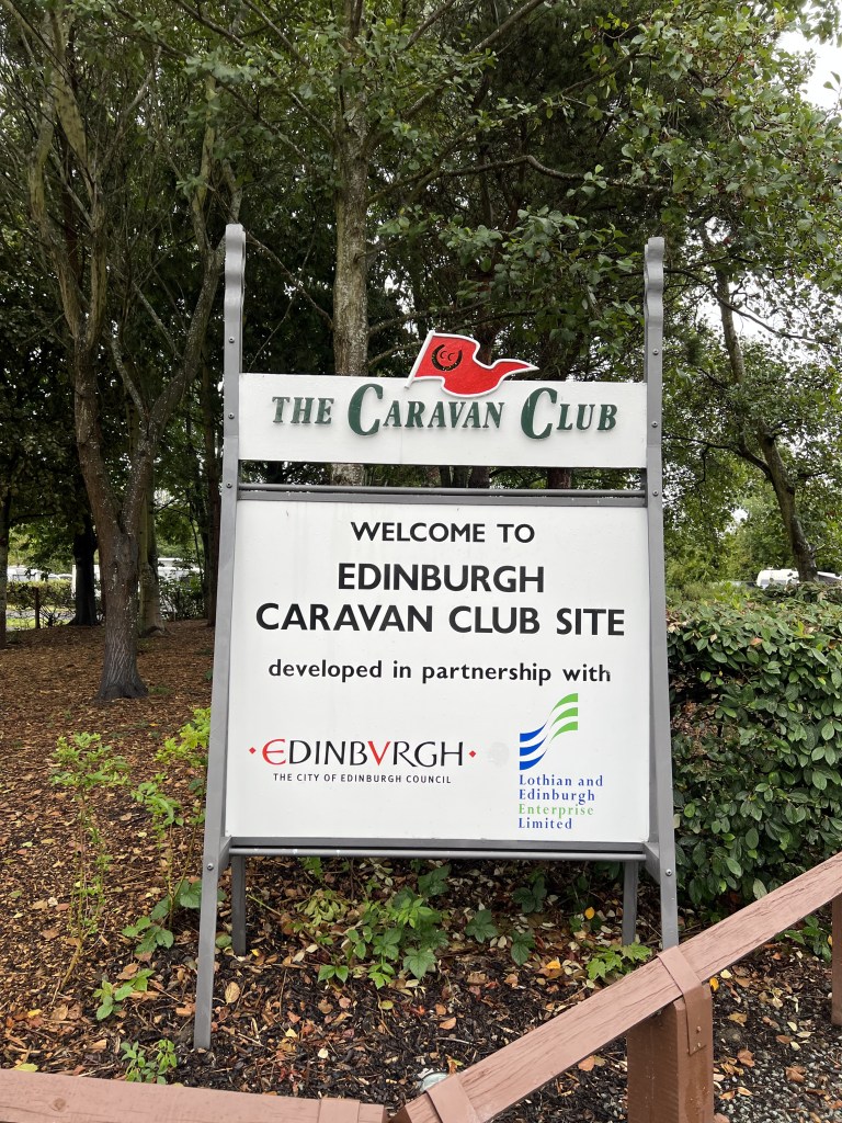 Edinburgh Club Site – We very much liked the site at Edinburgh. Despite the relentless rain! This was a very busy and completely full site during our stay (the Edinburgh Fringe was in full swing). There were a number of European motorhomes and caravans dotted around the site too and a few arriving on the off chance and being turned away. We selected a nice and wide corner pitch – Pitch 78 for this stay. The river and beach is a short walk across the road from the site and the city a short drive or bus route away. We had a very enjoyable drove over the A78 up through Jedburgh and across the hills – stop off at the England/Scotland border line too!