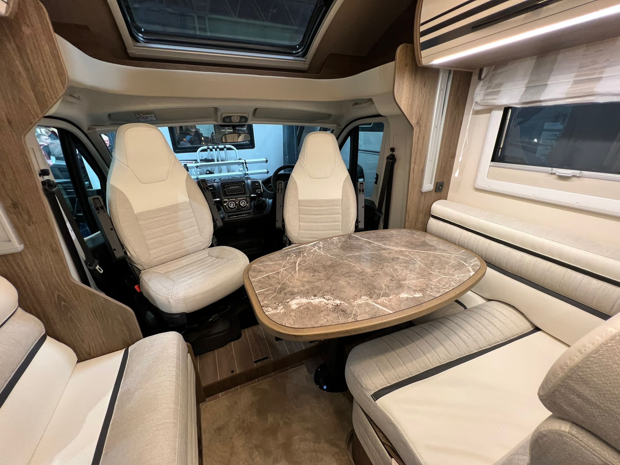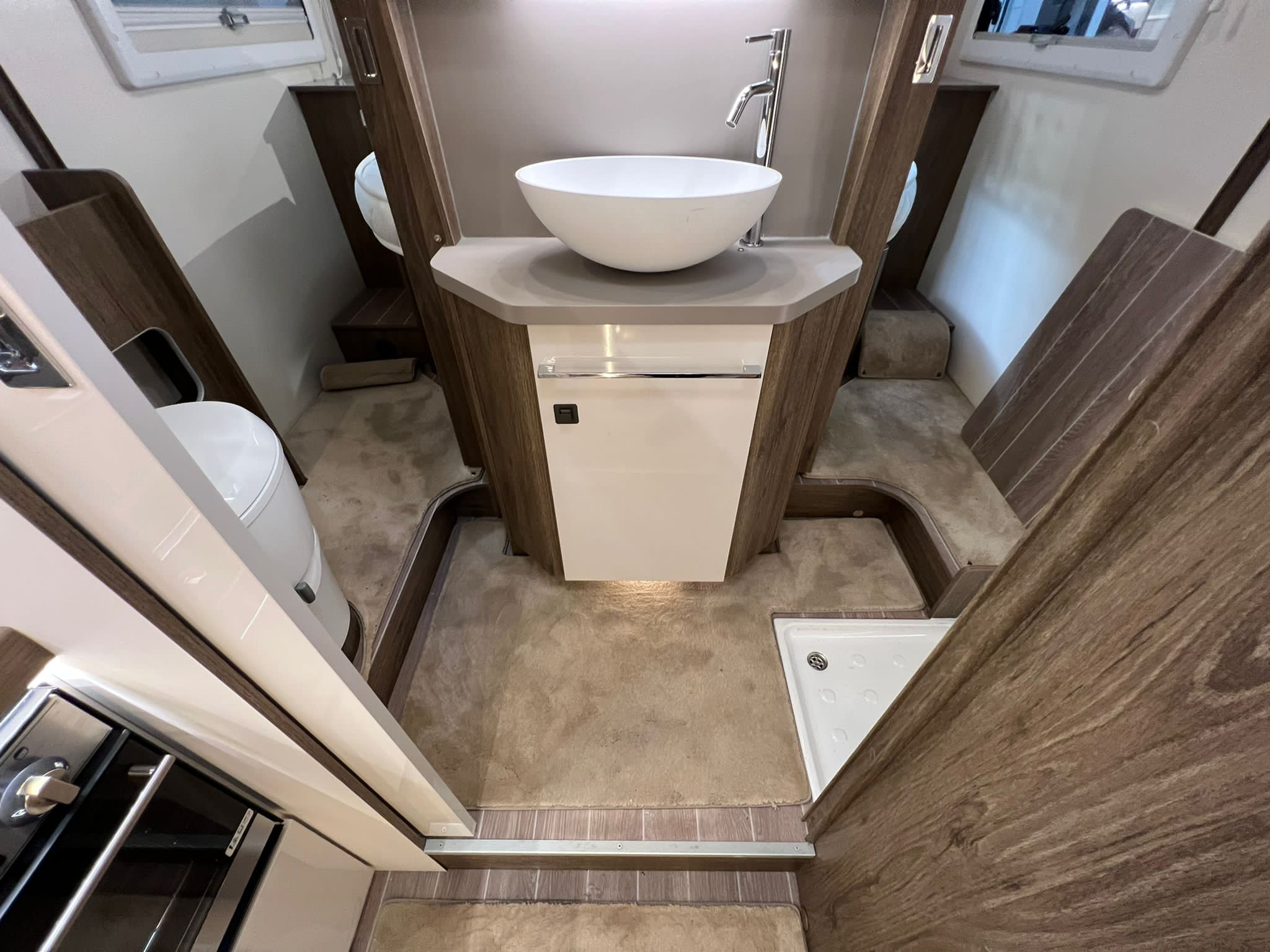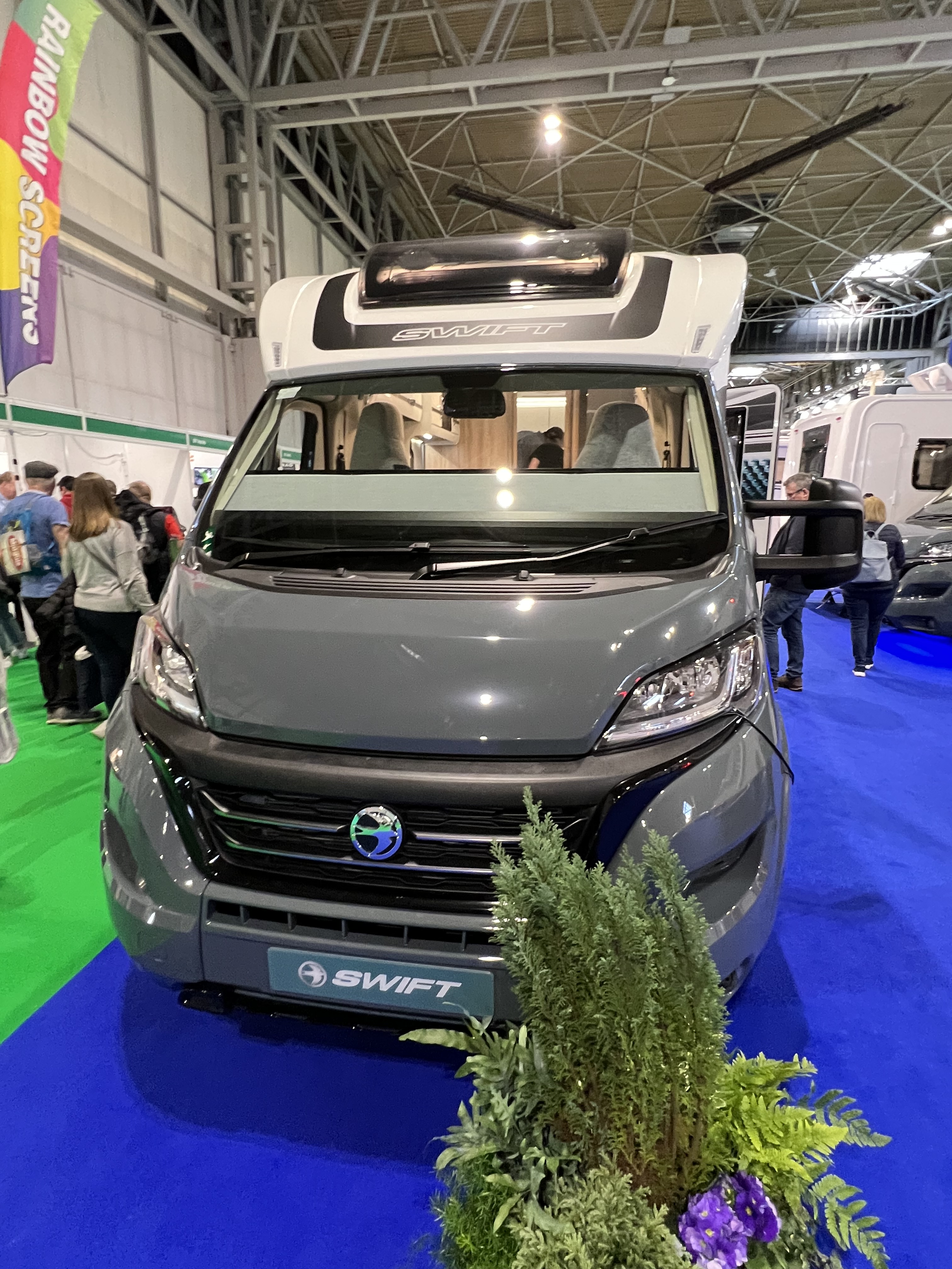 Research and conversation with the specialists on the stands ruled out the Bailey Adamo 75-4I due to towing limitations – the recent upgrades and refresh put this back on the list and the towing issue took it straight off again – we now understand this is to do with the ability of the Ford Transit automatic cabs. This also ruled out the Chausson 788 – but also due to the flimsy build quality. A good at show deal was offered (for the spec and part exchange) against an Elddis Encore 250 – but the all in one wash room would have been a compromise that we now know would not work. Shortlist comes down to the Adria Coral Plus, the Swift Hi-Style 694 and Auto-Trail Tracker RB.